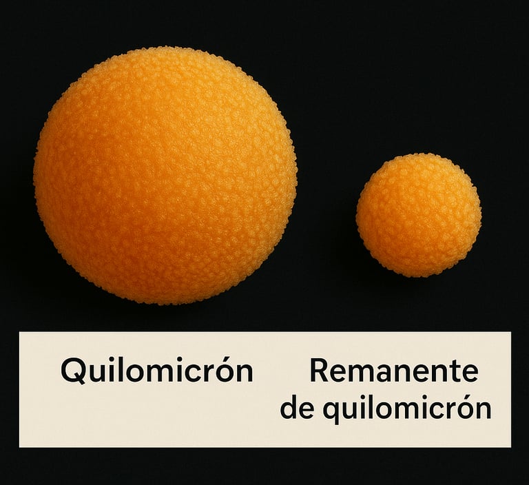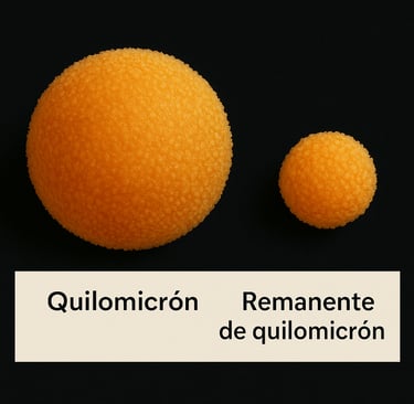 Finalmente tendrá un tamaño muy pequeño, momento en que se llaman “remanentes de quilomicrón”, que vuelven al hígado para que pueda aprovechar los restos de componentes que le quedan.